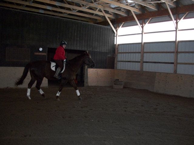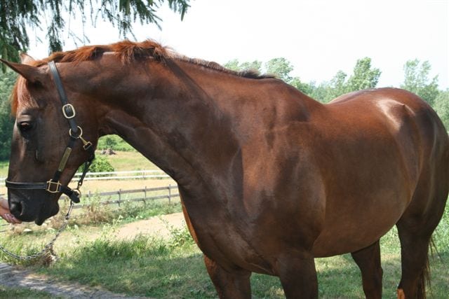 I have owned Gershwin for 14 years of his 15-year life. I bought him as a yearling, and will never part with him. He is a retired A-circuit Hunter/Jumper and the two of us are now working very hard at learning dressage.